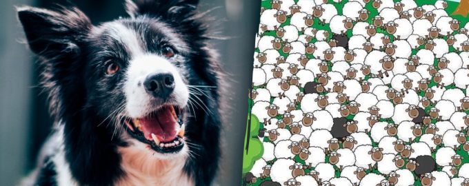 Dibutuhkan waktu 5 detik untuk menemukan seekor anjing di antara domba-domba / kolase: Glavred, foto: unsplash.com, jagranjosh